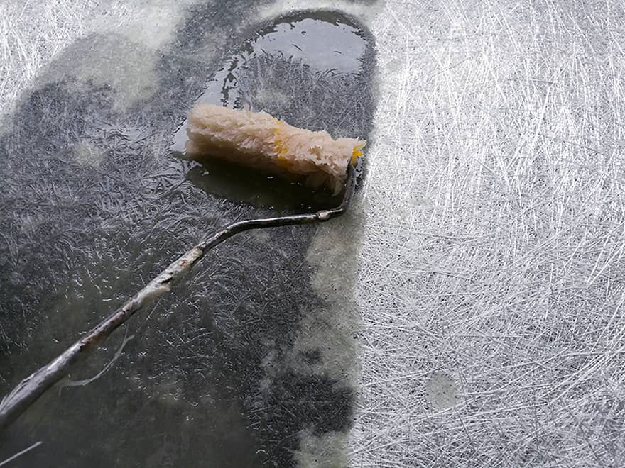 - Once the entire surface is covered by fiberglass resin, you can then remove any bubbles using the brush or roller. If you are busy with a fairly large area, you can use a specialized ventilation roller.